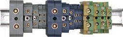 Клеммные зажимы и заглушки выполнены из цветного негорючего полиамида: желто-зеленого (земля), синего (ноль), серого, зеленого (фаза) цвета.
