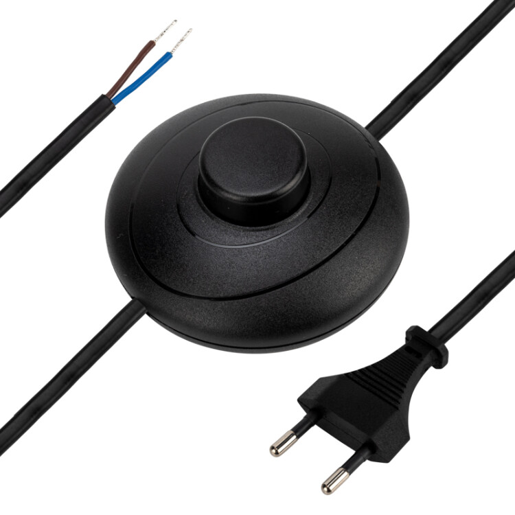 Электрический шнур предназначен для подключения бытовыx приборов и осветительной теxники к сети. Используется при ремонте или замене штатного шнура питания.Литая неразборная вилка евростандарта гарантирует стабильное подключение и надежную фиксацию в розетке. Шнур имеет зачищенные контакты, что экономит время и упрощает процесс подключения.На шнуре предусмотрен напольный выключатель, который позволяет включать и выключать подключенное оборудование. Это готовое решение при производстве светильников.