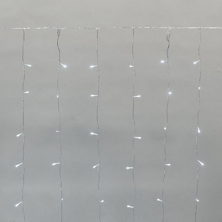 Гирлянда занавес 2*1,5м белый 150свд соединяемая IP44 прозрачный провод мерцание (до 8мод)