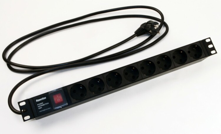 Блоки силовых (электрических) розеток Hyperline производятся в трех вариантах типоразмеров – для горизонтального монтажа по стандартам 10" и 19" (254 и 482,6 мм); для вертикального/произвольного монтажа (длина более 482,6 мм). Данные размеры оптимальны для распределения электропитания в телекоммуникационных и серверных шкафах и стойках, а также прекрасно подходят для подключения бытовой электротехники к сети переменного тока напряжением 250 В и частотой 50 Гц. Общий ток нагрузки до 16 А, при условии нормальной эксплуатации. Блоки розеток для трехфазных сетей рассчитаны на ток не менее 32 А.