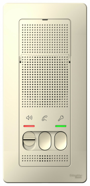 Устройство Systeme Electric (ранее Schneider Electric) BLANCA (цвет – молочный) переговорное настенного монтажа предназначено для домофонных систем, питается от батарейки (3 элемента питания ААА х 1,5В). Громкость устройства регулируется, нанесены символы «Звук» и «Разговор». Размеры устройства: 187*84*25 мм. Корпус изделия выполнен из ABS-пластика.