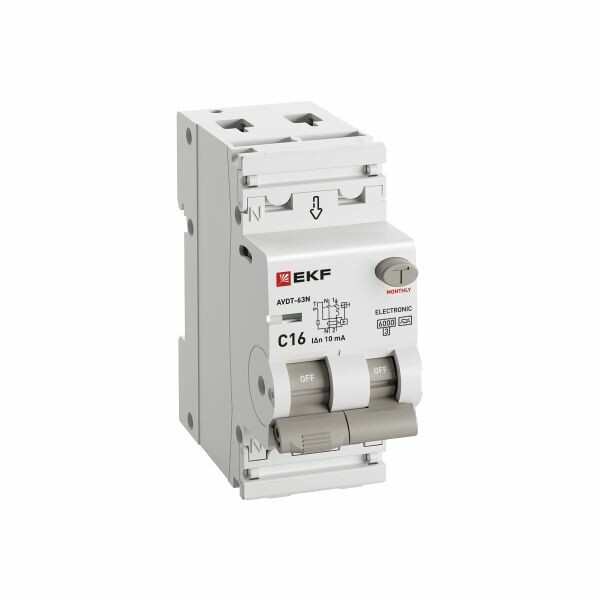 Дифавтомат 2Р 16А C тип A 10мА 6кА 2мод АВДТ-63N EKF PROxima
