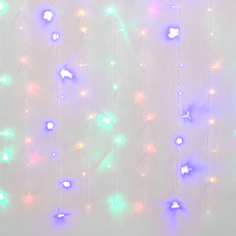 Гирлянда занавес 3*2м мульти 240свд соединяемая IP44 прозрачный провод мерцание