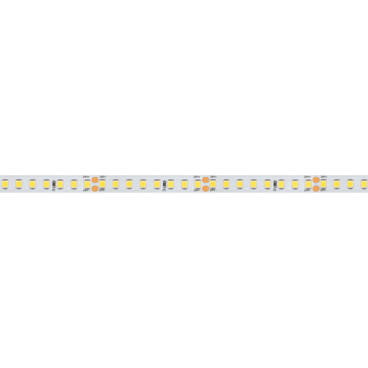 Светодиодная высо коэффективная лента RT серии A160. Светодиоды SMD 2835, 160 шт/м, белая плата шириной 8 мм, скотч 3M. Цвет ДНЕВНОЙ 4000K, высокая световая эффективность 150 лм/Вт, индекс цветопередачи CRI>85, угол 120°. Питание 24 В, мощность 12 Вт/м (60 Вт на 5 м). Размеры 5000x8x1.5 мм. Мин. отрезок 50 мм, 8 светодиодов. Цена за 1 м. Кратность заказа поставщику: 5 м.