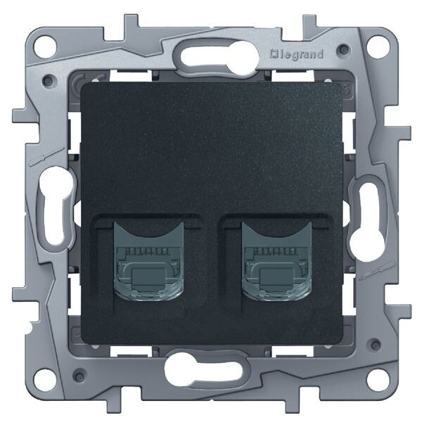 Розетка информационная двойная RJ45 кат.5Е Legrand Etika 672655 скрытой установки, антрацит