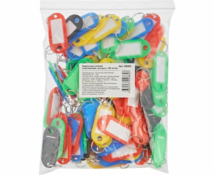 Бирки для ключей пластик разноцветный 100шт