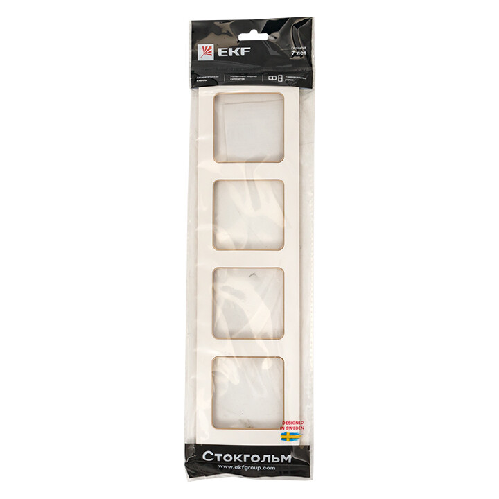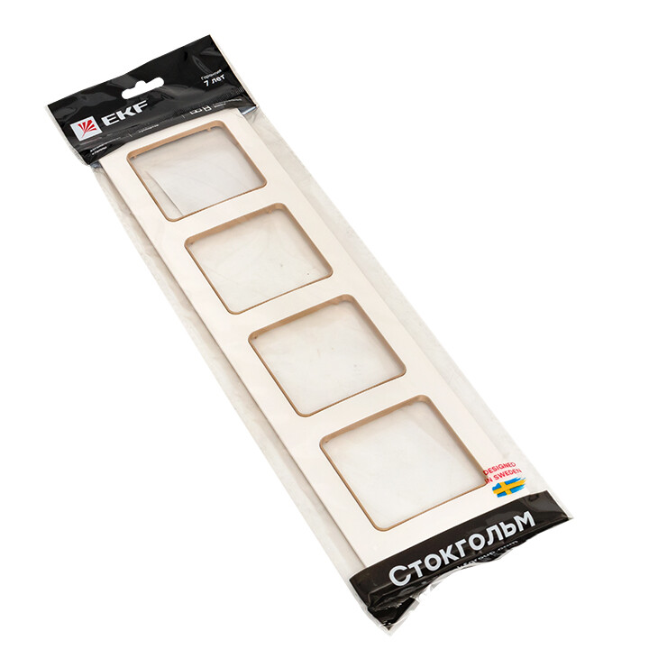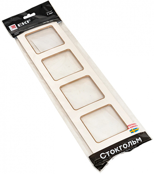 Рамка четырехпостовая EKF EАM-G-303-20 "Стокгольм" (IP20), белый / шампань