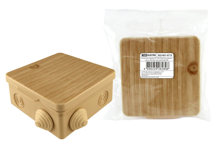 Коробка распределительная TDM SQ1401-0713 "Эко" (IP54) открытой установки, квадрат, сосна, 100 х 100 х 55 мм