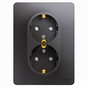 Розетка двухместная Schneider Electric GSL001326 Glossa (16 А, в сборе) с заземлением и защитными шторками, графит