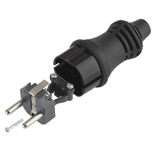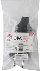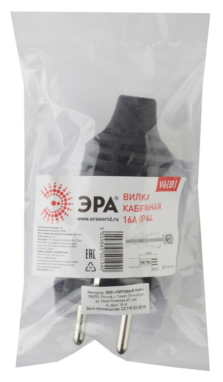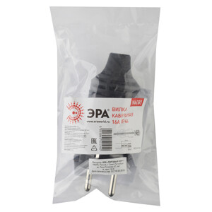 Вилка прямая V6(B) "Эра" Б0019193 (16 А, IP44, каучук) с заземлением, черный