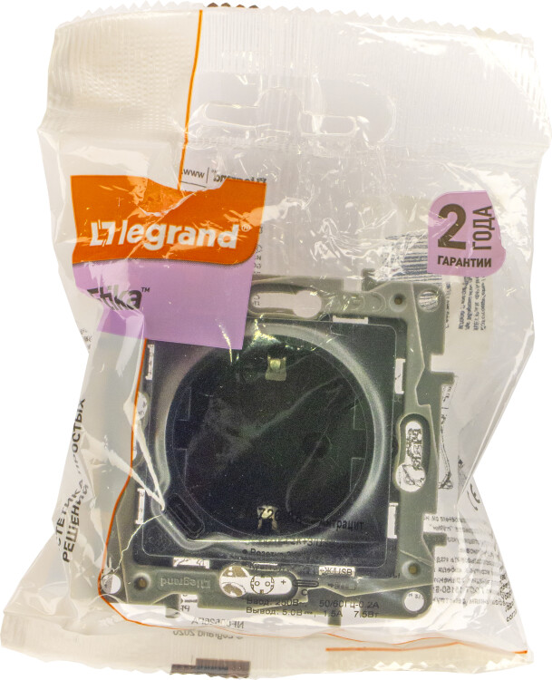 Этика антрацит розетка USB С скрытая 2-ая 15000мА