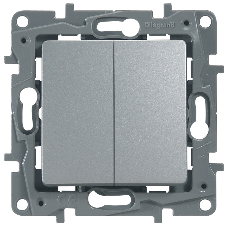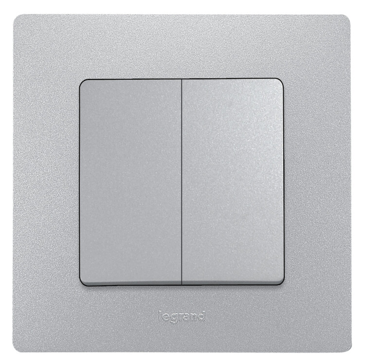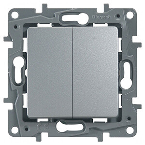 Выключатель / переключатель двухклавишный Legrand Etika 672412 (автоматические зажимы), алюминий