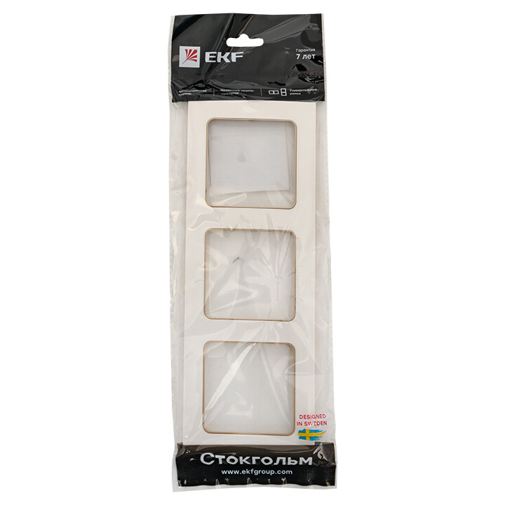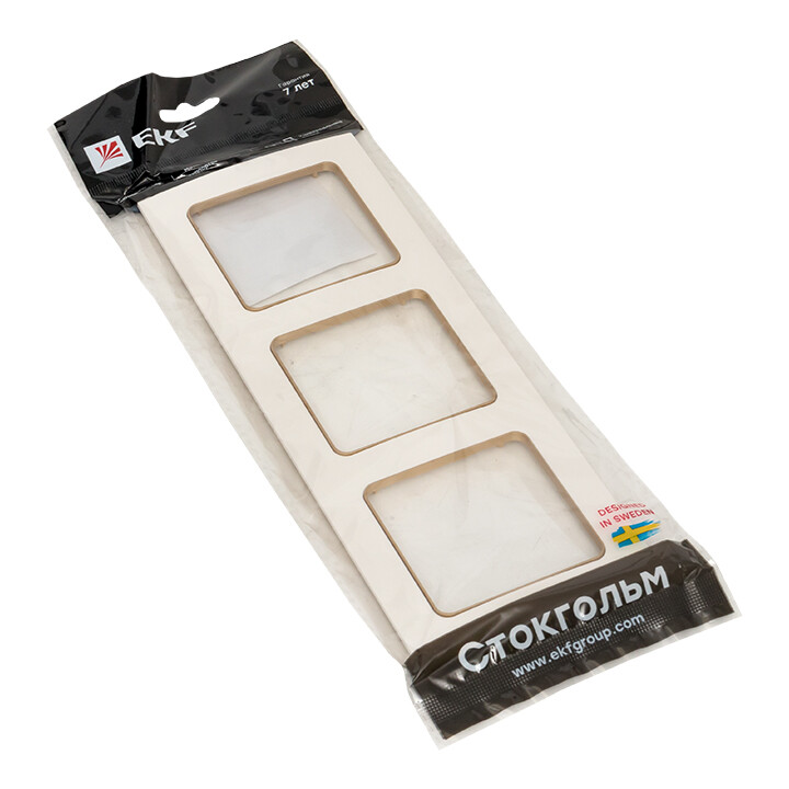 Рамка трехпостовая EKF EАM-G-302-20 "Стокгольм" (IP20), белый / шампань