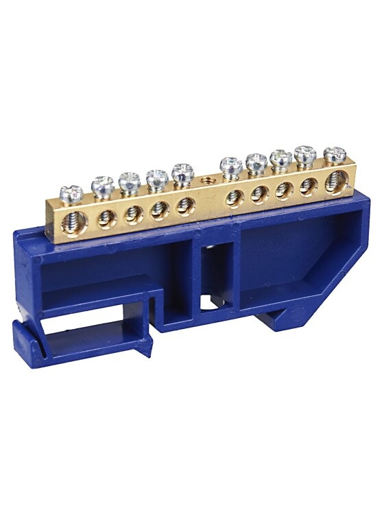 Шина N "0" ШНИ-6х9-10-Д-С IEK (10 групп) на DIN-изоляторе, синий
