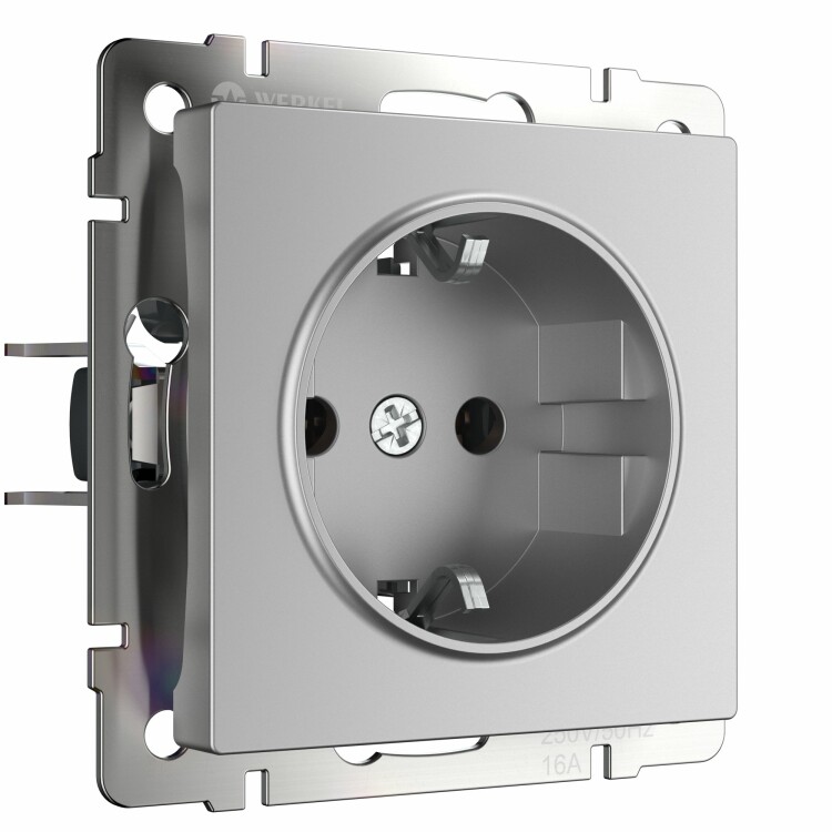 Веркель серебро розетка скрытая 1-мест заземление IP20