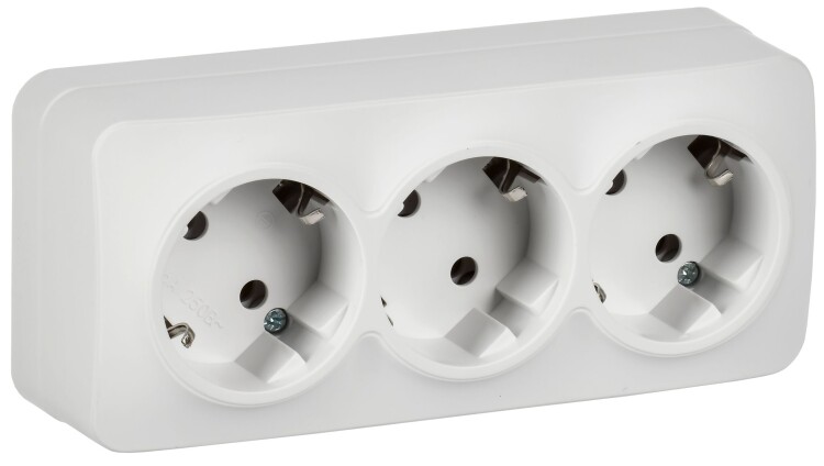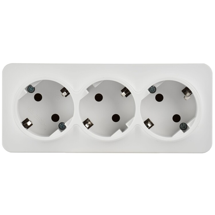 Розетка трехместная IEK РС23-3-ХБм Glory (16 А, IP20) открытой установки, с заземлением, белый матовый