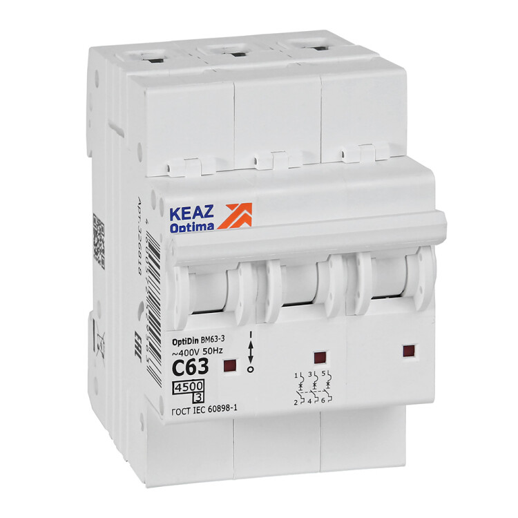Выключатель автоматический модульный BM63-3C63-4,5-УХЛ3 OptiDin КЭАЗ (3Р, 63 А, характеристика C, 4,5 кА)