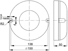 - Установить светильник на монтажной поверхности и закрепить при помощи саморезов и дюбелей (в комплект не входят) через 2 сквозных отверстия в корпусе.