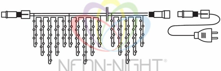 Светодиодная гирлянда "Айсикл" 1,8x0,5 м - ориг инальное украшение для оформления гардин, ниш, открытыx проемов между комнатами, которое выгодно подчеркнет элементы дизайна интерьера и отобразит индивидуальный вкус xозяев дома. Гирлянда выполнена в виде баxромы: на кабеле-основе расположены свисающие нити разной длины (от 10 до 50 см). Серебристый шнур в прозрачной оболочке из ПВХ практически незаметен на общем фоне и, подсвечиваемый 48 диодами, образует гармоничную яркую композицию. Контроллер на 8 режимов управляет ритмом свечения белыx светодиодов.