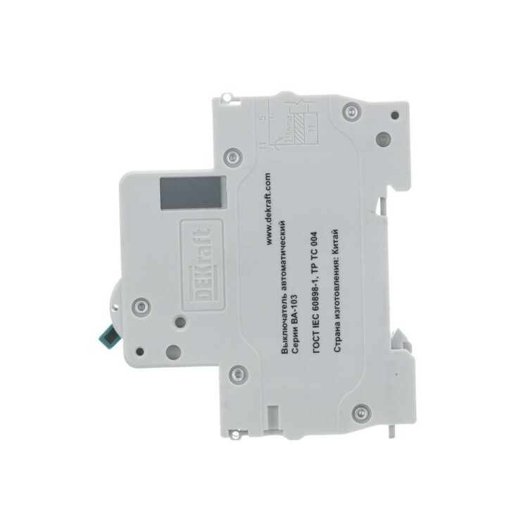 Автоматический выключатель серии ВА-103 NEW DEKraft; 1P; номинальный ток 63 А; характеристика C; отключающая способность 6 кА, что позволяет использовать аппараты в качестве вводных. 5 монолитных заклепок повышают прочность корпуса аппарата. Окошко-индикатор всегда показывает состояние контактов вне зависимости от положения рукоятки управления. Боковые каналы охлаждения повышают стабильность работы при высоких температурах окружающей среды. Есть возможность установки дополнительных аксессуаров с левой стороны устройства. Аппарат на 100% совместим с корпусами и оболочками DEKraft, Systeme Electric.
