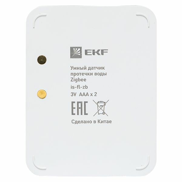 Умный датчик протечки Zigbee EKF Connect позволяет своевременно фиксировать протечку воды в системах водоснабжения, отопления, канализации и кондиционирования, уведомит вас об обнаружении превышения допустимого уровня воды с помощью звукового сигнала и отправки уведомления. Умные датчики можно дистанционно контролировать и управлять ими с помощью мобильного приложения EKF Connect Home для iOS и Android. Умный датчик поддерживает протокол Zigbee, для подключения нужен хаб. •Предназначен для обнаружения протечек воды в системах водоснабжения, отопления, канализации и кондиционирования •Издает звуковой сигнал и отправляет уведомление. •Поддержка протокола Zigbee •Для подключения нужен Zigbee хаб