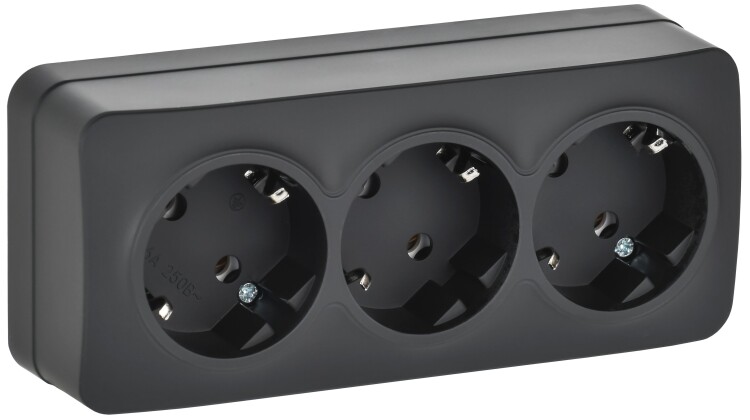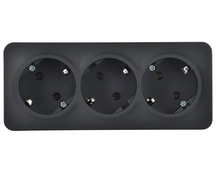 Розетка трехместная IEK РС23-3-ХЧм Glory (16 А, IP20) открытой установки, с заземлением, черный матовый