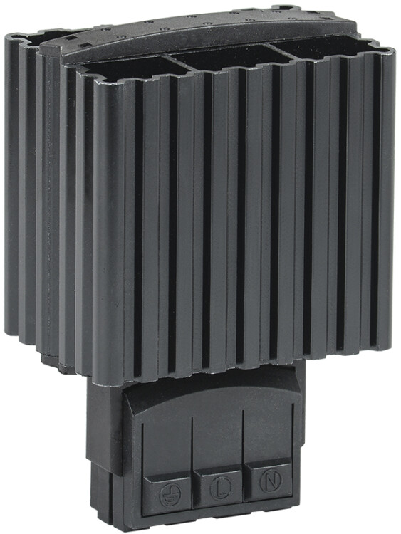 Обогреватель на DIN-рейку предназначен для нагрева воздуха внутри электротехнических шкафов. Создаваемый конвекционных воздушный поток предотвращает образование областей с низкой температурой и защищает электрические компоненты от образования конденсата и замерзании при перепадах температуры, а также коррозии металлических элементов активного оборудования. Наличие калорифера с саморегулированием обеспечивает естественную циркуляцию нагретого воздуха внутри шкафа и позволяет избежать перегрева. При установке в паре с терморегулятором используется для поддержания требуемой температуры внутри шкафа и организации стабильной работы установленного оборудования. Может быть использован в электрооборудовании переменного тока частотой 50 Гц и напряжением до 230 В. Динамическая система нагрева воздуха максимально эффективна при длительных режимах работы. Подключение посредством зажимов делает монтаж максимально простым и быстрым.