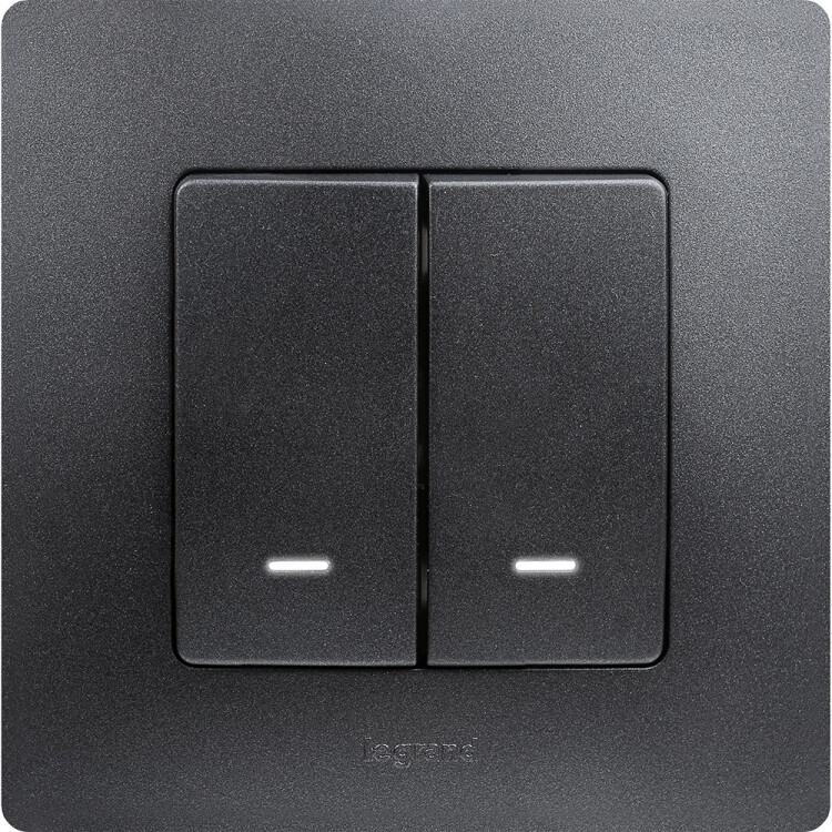 Выключатель двухклавишный Legrand Etika 672604 (10 А, IP20) скрытой установки, с подсветкой, антрацит