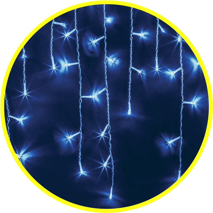 тип гирлянды - бахрома ; цвет свечения - синий; режим постоянного свечения; размер - 2х0,5 м; длина провода до первого светодиода - 1,5 м; количество светодиодов - 100 шт; расстояние между светодиодами - 8 см; соединение в линию до 5 гирлянд; расстояние между нитями - 10 см; тип провода - прозрачный морозостойкий ПВХ; степень защиты - IP44; температура эксплуатации от -40 до +40°С; срок службы - 50000 часов; гарантия - 12 месяцев.