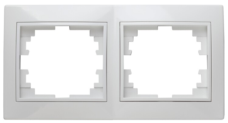 Рамка выполнена из термопласта. Устанавливается на 2 устройства серии Intro Plano, смонтированные в два горизонтально установленных подрозетника.