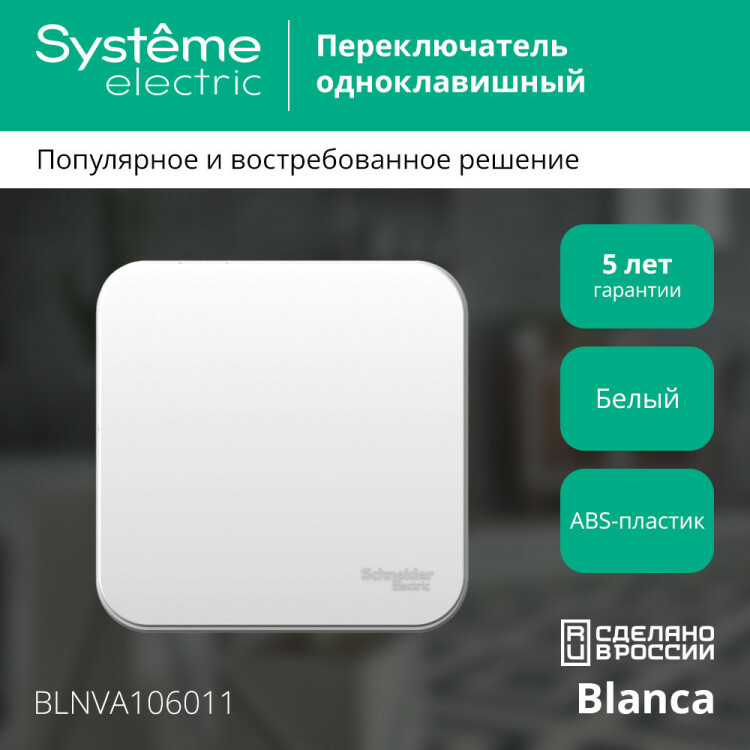 Переключатель одноклавишный Schneider Electric BLNVA106011 Blanca (10 А) открытой установки, белый