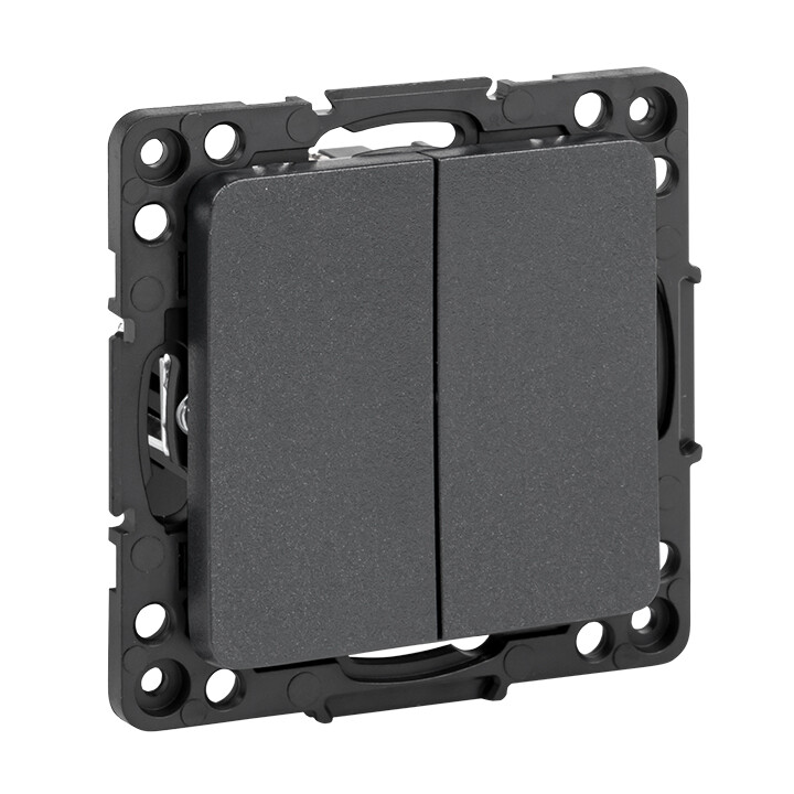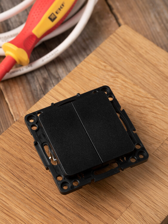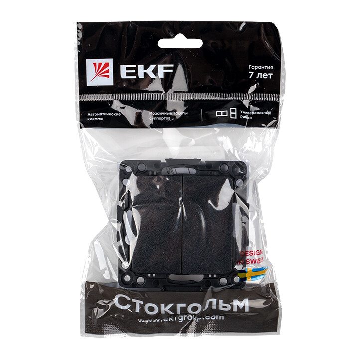 Выключатель двухклавишный EKF EZV10-023-10 "Стокгольм" (10 А, IP20) скрытой установки, черный