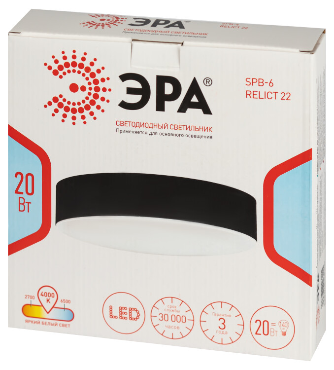 Потолочный светильник ЭРА SPB-6 Relict в чёрном цвете - арт. Б0059508. Диаметр - 21 см. Мощность - 20 Вт. Температура света - 4000 К: нейтральный белый, приближенный к естественному дневному. Такая цветовая температура идеальна для освещения как жилых пространств, так и коммерческих площадей. Светильник на потолок имеет минималистичный дизайн. Внешнее кольцо выполнено из метала с порошковым окрашиванием. Светильник потолочный не имеет рамок, обрамляющих рассеиватель с лицевой стороны, что придаёт ЭРА Relict эстетичный внешний вид. Благодаря простому конструктиву удалось добиться выгодной цены, при этом ЭРА SPB-6 Relict по своей надёжности и внешнему виду не уступает более дорогим вариантам на рынке. Новый конструктив не влияет на долговечность и функциональность светильника.