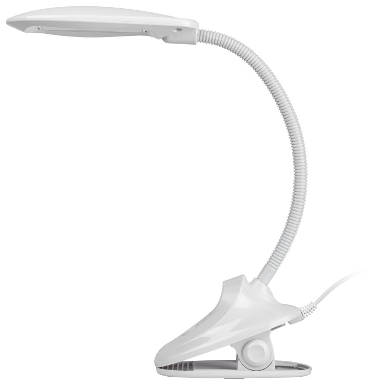 Настольный светильник-прищепка ЭРА NLED-478-8W-W со светодиодами (LED) в качестве источников света. У светильника выключатель на основании. Это базовая модель с оптимальным универсальным дизайном хорошей для работы за столом высоты. Гибкая стойка позволяет выбирать наиболее комфортное направление света.