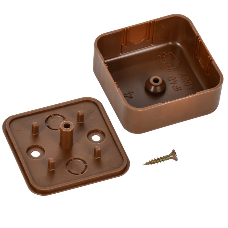 Монтажные коробки для открытого монтажа предназначены для разветвления проводов и кабелей, также для скрытия и дополнительной защиты мест коммутации. Коробки используются как часть системы электрической канализации, состоящей из кабельных каналов. Крепление к стене осуществляется при помощи саморезов. Материал изготовления: полистирол. Материал коробок является безгалогенным («HF» — halogen-free). Цвет: дуб. Степень защиты: IP40. Количество вводов: 2 - D=20мм. Размер: 50х50х20мм.