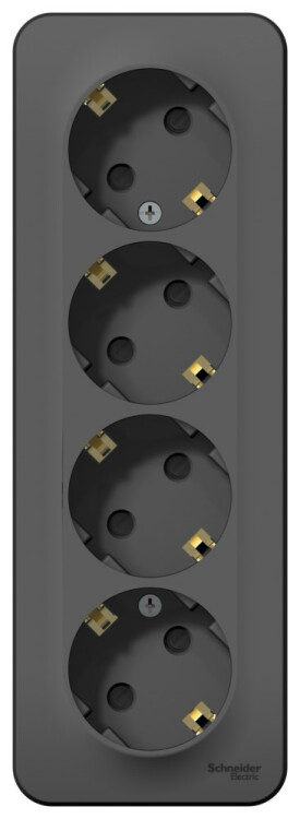 Розетка Systeme Electric (ранее Schneider Electric) BLANCA (антрацит, открытой установки) четырехместная, с заземлением, шторками и изолирующей пластиной предназначена для сетей до 250В, на ток до 16А. Четырехместная розетка позволяет подключить четыре устройства в одном месте. Шторки и заземление обеспечивают дополнительную безопасность. Она изготовлена из ABS-пластика, проста в установке и удобна в применении.