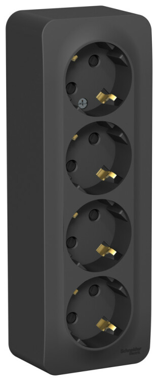 Розетка четырехместная Schneider Electric BLNRA011416 Blanca (16 А) с заземлением и защитными шторками, открытой установки, антрацит