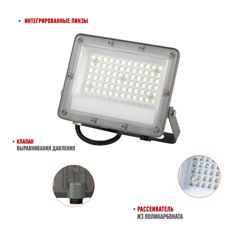 LED-прожектор профессиональной серии ЭРА PRO LPR-063 — высокоэффективное решение для сложных условий эксплуатации. Мощность — 50 Вт. Цветовая температура — 6500 К (холодный белый свет). Прожектор выполнен в сером цвете, корпус из литого алюминия с порошковой окраской.
