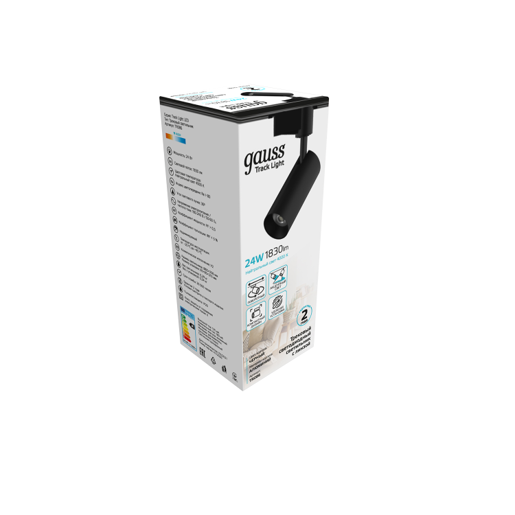 950лм LED свет с фокусировкой луча 24°. Цветовая температура нейтральная белая 4000К (не искажающий цветовые оттенки свет). Корпус светильника из алюминия внутри зеркальный рефлектор и сатинированная пластиковая линза. Встраивается в трековые системы Gauss.
