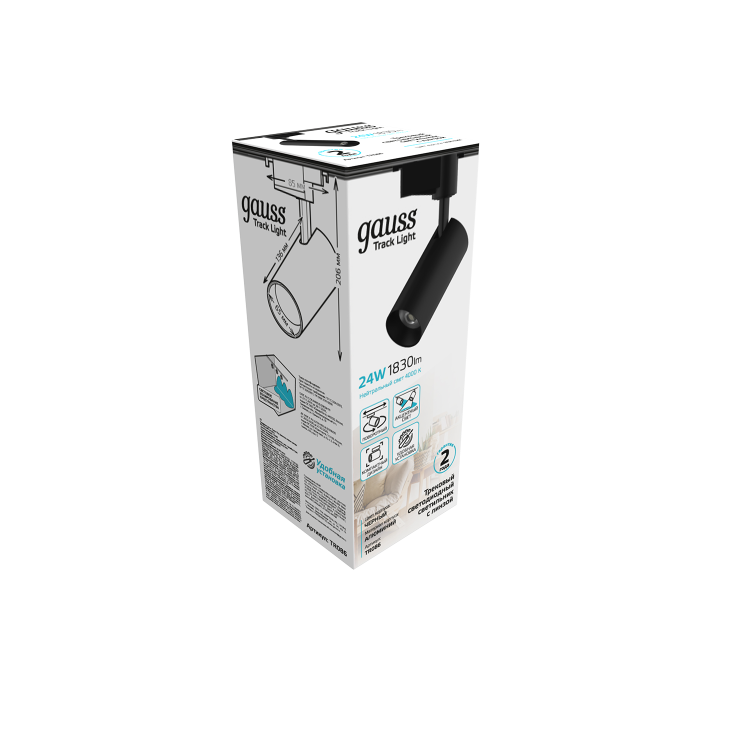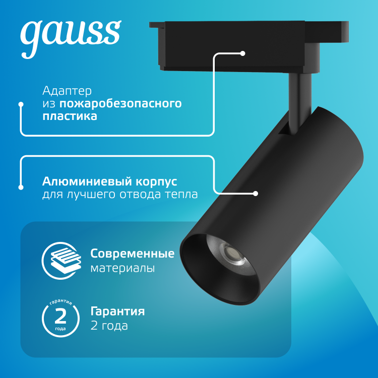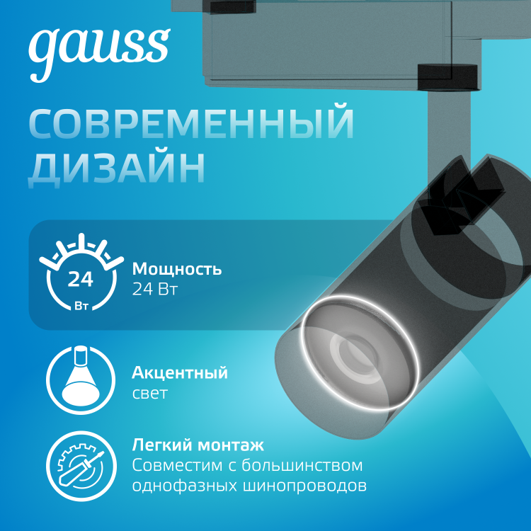 Светильник трековый Gauss цилиндр 12W TR065 имеет большой угол вращения и наклона, что делает его универсальным источником освещения и подсветки больших и малых помещений жилого и коммерческого назначения. У светильника компактный минималистичный дизайн, яркий