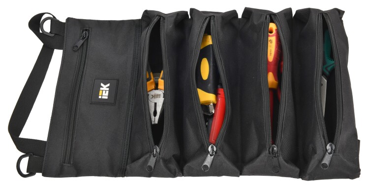 Сумка скрутка BG-10 IEK предназначена для удобного хранения и транспортировки инструментов. Скрутка поможет навести порядок в багажнике автомобиля и обеспечит легкий и быстрый доступ к необходимым инструментам. Изделие представляет собой основу прямоугольной формы, на которой располагаются четыре объёмных отделения на молнии и карман, в которых можно аккуратно разместить мелкие инструменты или расходные материалы. Специальная система стяжки обеспечивает легкую трансформацию сумки, за счет чего она приобретает удобную, компактную форму. Изделие закрывается на застежку фастекс, для удобства транспортировки предусмотрена ручка. Для удобства использования в подвешенном состоянии сумка оснащена двумя вшитыми полукольцами.