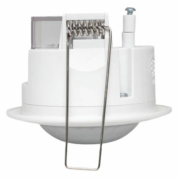 Алгоритм работы: при возникновении движения в поле зрения датчика встроенное электромеханическое реле (рассчитано на полную мощность 1200Вт) коммутирует подключенную нагрузку. После этого нагрузка находится под напряжением в течение заданного времени (от 10 сек. до 7 минут, время настраивается) и выключается. Дополнительно датчик имеет функцию контроля освещенности. Если освещенность в зоне детекции выше заданного уровня (настраивается), то нагрузка включаться не будет, что позволяет дополнительно экономить электроэнегию днем.