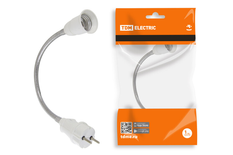 Патрон-переходник вилка-E27 алюминий белый TDM гибкий 300мм