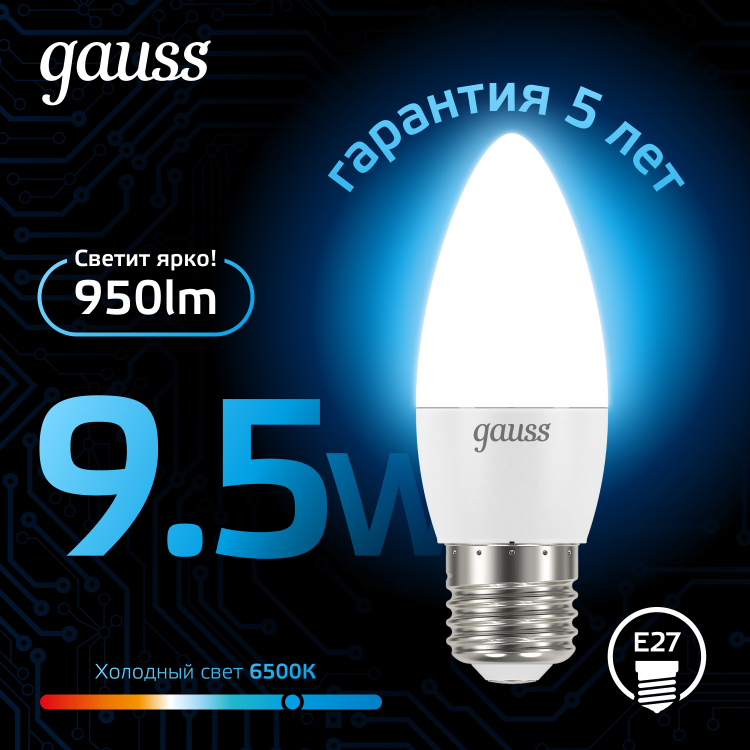 Светодиодные лампы Gauss Candle созданы в форме свечи. Лампы подойдут как для домашнего, так и для коммерческого использования. Такой тип освещения прекрасно смотрится в светильниках без плафонов или устанавливается в люстры и бра. Модель обладает широким диапазоном цветовых температур и мощностей, что поможет создать атмосферу тепла и уюта или концентрации. Равномерный спектр света создает зрительный комфорт в любом помещении. Данный тип освещения от Gauss обеспечивают стабильную работу в течение всего срока службы.