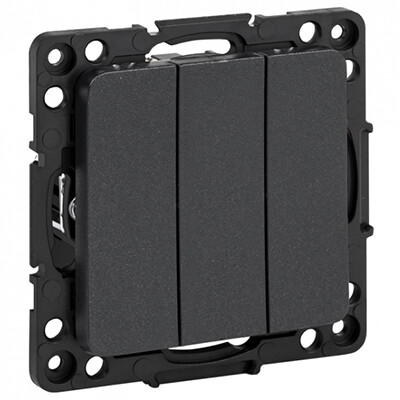 Выключатель трехклавишный EKF EZV10-024-10 "Стокгольм" (10 А, IP20) скрытой установки, черный