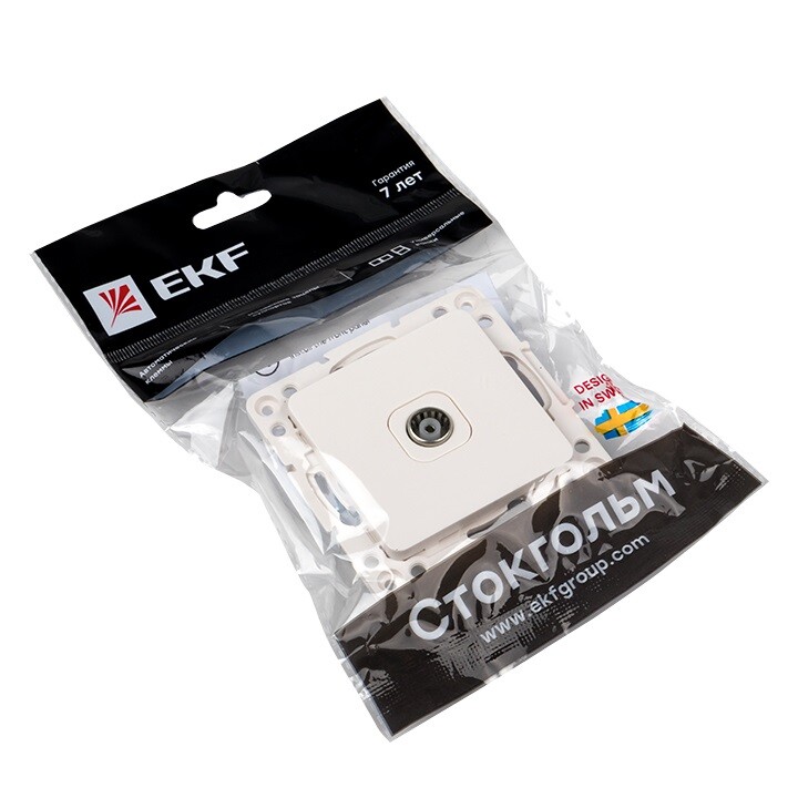 Розетка телевизионная проходная EKF EYA00-127-10 "Стокгольм" (750 м, 5 - 862 МГц, IP20) скрытой установки, белый