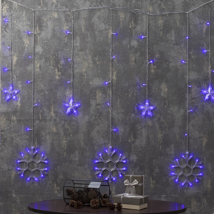 Гирлянда бахрома 2,4*0,9м синий 150свд с контроллером IP20 прозрачный провод снежинки 8режимов
