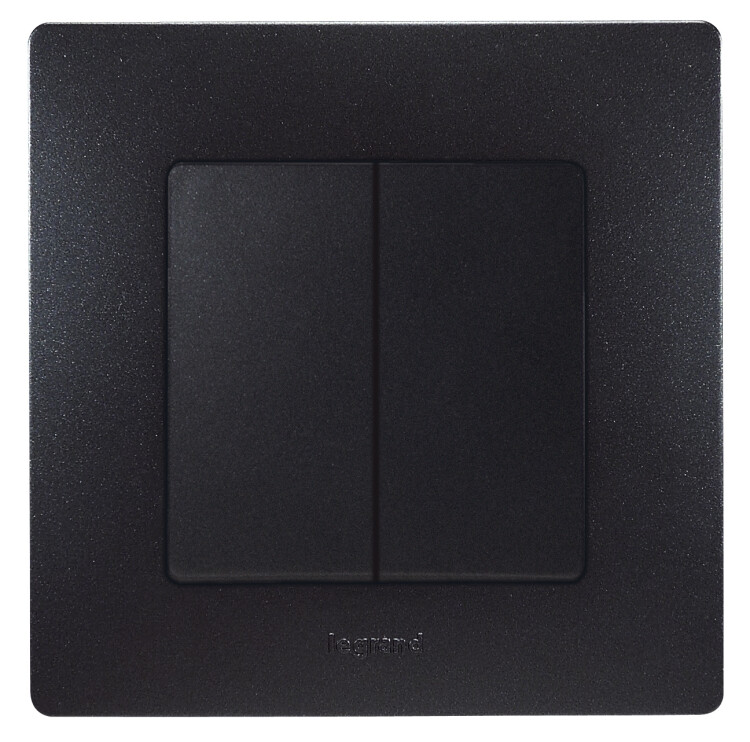 Переключатель двухклавишный Legrand Etika для скрытого монтажа, номинальный ток 10 А, цвет антрацит. Предназначен для управления двумя нагрузками с одного или с двух мест.