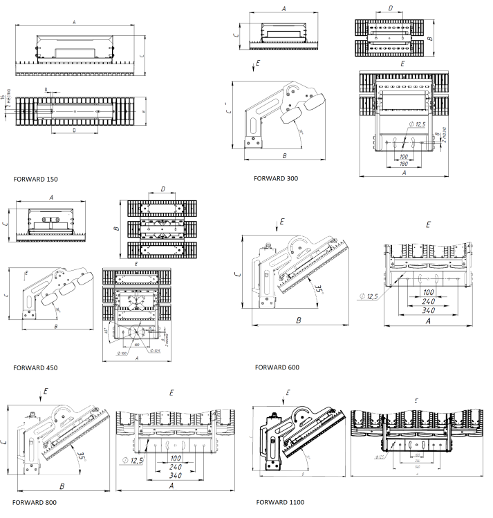 Серия мощных светодиодных светильников, предназначенных для крытых и открытых спортивных площадок. Модульная конструкция светильника позволяет закреплять на скобе от одного до восьми модулей, обеспечивая световой поток до 131 000 лм. Специальные светодиоды с индексом цветопередачи Ra90, источники питания с возможностью управления по протоколам DALI, DMX, линзы с симметричным и ассиметричным светораспределением, комплекты крепления, обеспечивающие регулировку угла наклона с шагом 1, позволяют осветить стадионы и арены, где предусматривается ТВ-съемка в формате HD.