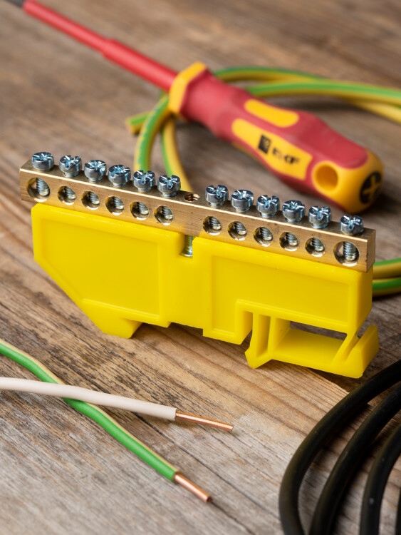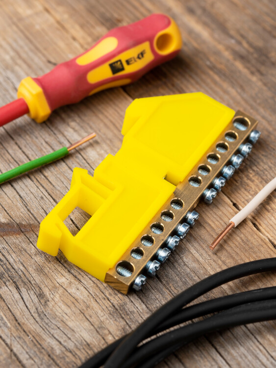 Шина нулевая 6*9 12групп DIN-изолятор желтый на DIN-рейку EKF